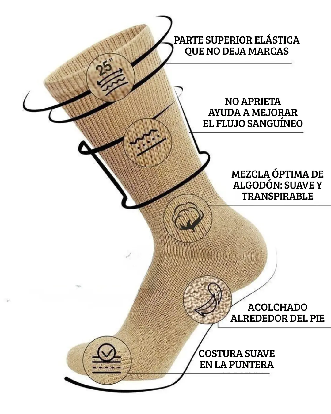 Si tus pies se inflaman, se irritan fácilmente o sientes molestia con medias comunes, este pack es para ti. Su diseño sin compresión fuerte ayuda a evitar marcas, presión y molestias, brindando una experiencia de descanso en cada paso.