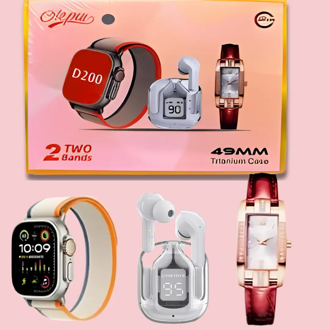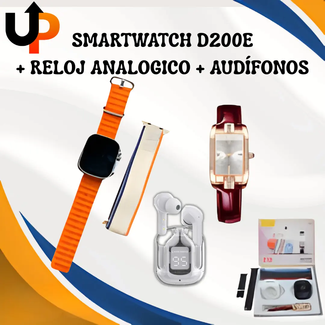 Descubre el equilibrio perfecto entre elegancia, funcionalidad y tecnología. Este exclusivo combo incluye un Smartwatch multifuncional, un reloj analógico de diseño premium y audífonos inalámbricos de alta calidad. Perfecto para quienes buscan verse bien, estar conectados y simplificar su día a día.