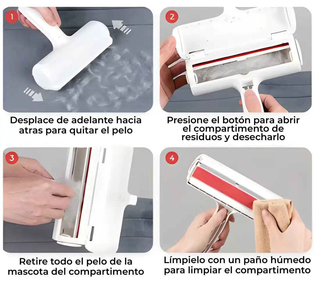 La solución es simple: con el rodillo removedor de pelo eliminas los pelos en segundos con una sola pasada, sin esfuerzo, sin pilas ni adhesivos, y recuperas la limpieza de tu hogar todos los días. 🐾✨